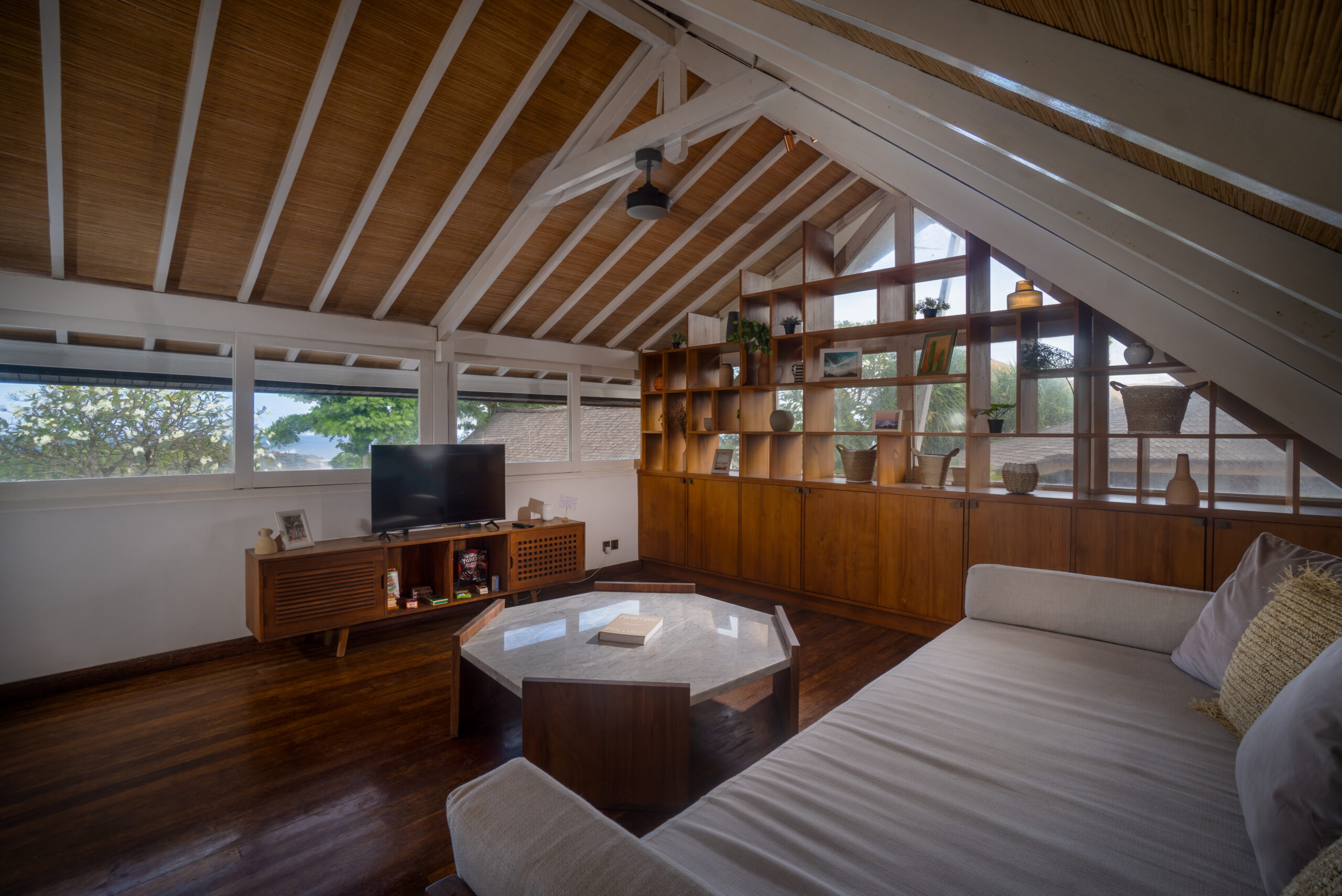 The villa features a cozy room with a comfortable lounging area and a TV, perfect forquiet relaxation or entertainment. It’s an ideal space to curl up with a good book or for kids to enjoy a movie. The inviting atmosphere makes it a versatile retreat for allages.